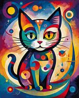 Dit is een digitaal kunstwerk van een kat. Een abstract modern beeld met felle kleuren. Een vrolijk en kleurrijk schilderij geschikt voor iedere ruimte.