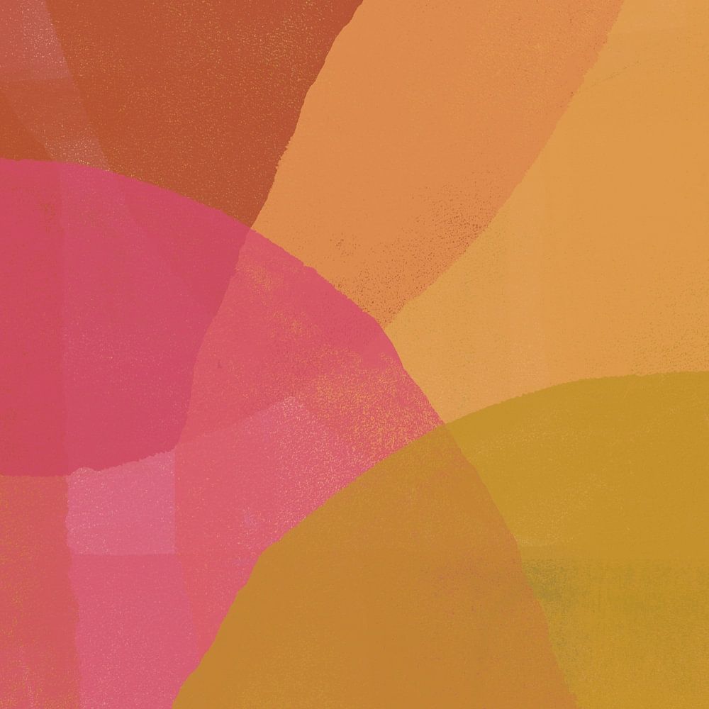 Kleurrijke collage van abstracte vormen, lijnen en kleurblokken.