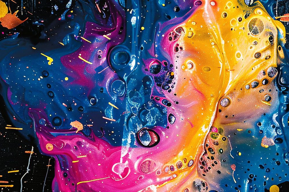 Dit unieke kunstwerk is een explosie van kleur en energie. Met levendige tinten van geel, roze, blauw en oranje tegen een dramatische zwarte achtergrond, trekt dit stuk meteen de aandacht. De spetters en strepen geven het werk een dynamisch en spontaan karakter, wat perfect is om een ruimte op te fleuren en een moderne, artistieke sfeer te creëren. Ideaal voor in de slaapkamer of kantoor, waar het een inspirerende en levendige omgeving kan bevorderen. Dit kunstwerk is niet alleen een visueel spektakel, maar ook een gespreksonderwerp dat je interieur een unieke en persoonlijke touch geeft.