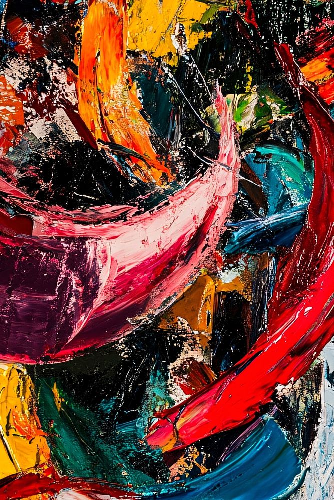 Dit kleurrijke ontwerp is een explosie van energie en expressie, ideaal om een ruimte te verlevendigen. Met levendige tinten rood, blauw, geel, en groen, brengt dit werk een gevoel van dynamiek en beweging. Perfect als een centraal kunstwerk in moderne interieurs, voegt het een unieke en levendige sfeer toe. Geschikt voor woonkamers, kantoren of elke ruimte die baat heeft bij een creatieve impuls. Dit ontwerp spreekt liefhebbers van abstracte en expressieve kunst aan en zorgt voor een conversation starter in elke setting.