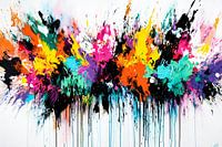 Een levendig en dynamisch kunstwerk dat kleur en expressie combineert in een explosieve compositie. Perfect voor moderne interieurs die een statement willen maken, brengt dit schilderij energie en creativiteit in elke ruimte. Het gebruik van felle kleuren en spetters maakt het ideaal om muren tot leven te brengen. Geschikt voor…