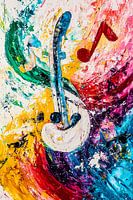Dit kleurrijke kunstwerk brengt de harmonie van muziek en kunst tot leven. Met een explosie van levendige kleuren zoals rood, blauw en geel, verbeeldt dit schilderij de dynamiek van muzieknoten en instrumenten op abstracte wijze. Het energieke ontwerp straalt creativiteit en passie uit, en vormt een perfecte blikvanger voor moderne woonruimtes of kantooromgevingen. Dit kunstwerk is een uitnodiging om de kracht van klank en visuele schoonheid te vieren.