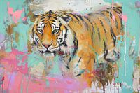 Dit prachtige kunstwerk combineert de majestueuze uitstraling van een tijger met een levendig palet van abstracte expressie. De mix van felle kleuren zoals oranje, blauw en roze tegen een achtergrond van gedurfde penseelstreken creëert een dynamisch en oogverblindend effect. Perfect voor elke moderne ruimte, dit schilderij brengt energie en levendigheid in uw interieur. Of het nu in een slaapkamer, kantoor of woonkamer wordt gehangen, het trekt gegarandeerd de aandacht en bewondering van iedereen die het ziet. Voeg een vleugje wilde schoonheid en abstracte flair toe aan uw huis met dit unieke kunstwerk.