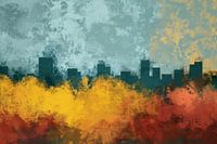 Dit prachtige digitale kunstwerk toont een betoverende skyline van een stad, met daaronder een explosie van kleurrijke natuur. De abstracte stijl en het gebruik van levendige kleuren zoals blauw, geel, oranje en rood, brengen een dynamische en energieke sfeer in elke ruimte. Dit kunstwerk is perfect voor moderne interieurs en voegt een vleugje stedelijke elegantie en natuurlijke schoonheid toe. Plaats het in je woonkamer of kantoor om een visueel statement te maken en een gevoel van inspiratie en creativiteit te bevorderen. De combinatie van stedelijke en natuurlijke elementen maakt dit schilderij uniek en veelzijdig, geschikt voor diverse interieurstijlen.