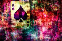 Dit unieke kunstwerk combineert de klassieke uitstraling van een speelkaart met een moderne en dynamische graffiti-stijl. Het kleurrijke ontwerp barst van energie, met levendige tinten roze, paars, geel, groen en blauw die samen een explosieve visuele impact creëren. Perfect om een statement te maken in elke ruimte, van een trendy kantoor tot een stijlvolle slaapkamer. Laat dit opvallende stuk uw wanddecoratie versterken en een vleugje creativiteit aan uw interieur toevoegen.