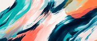 Een harmonieuze samensmelting van levendig turquoise en zachte koraalkleuren betovert de kijker. De dynamische lijnen geven de kamer een frisse, creatieve energie. Dit kunstwerk is ideaal voor kantoor of woonkamer en creëert een inspirerende sfeer die uitnodigt om te dromen en te creëren.