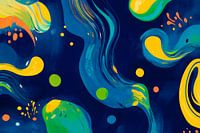 In een spel van levendige kleuren dansen gebogen lijnen op een diepblauwe achtergrond, terwijl levendige accenten van geel en groen de compositie tot leven brengen. Deze dynamische vreugde voegt een vleugje frisheid en energie toe aan elke kamer - perfect voor een creatieve keuken of een inspirerende studeerkamer.
