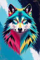 Dit opvallende en moderne kunstwerk toont een abstracte weergave van een wolf. De felle kleuren zoals blauw, roze en geel geven het ontwerp een levendige en dynamische uitstraling. Perfect voor een moderne inrichting, bijvoorbeeld in een slaapkamer of kantoor, waar je op zoek bent naar een gedurfde en unieke toevoeging aan je ruimte. Het ontwerp combineert de kracht van de natuur met abstracte patronen en scherpe lijnen, wat een gevoel van energie en beweging oproept. Ideaal voor liefhebbers van dieren, kleuren, en moderne kunststijlen die graag een statement willen maken in hun interieur.