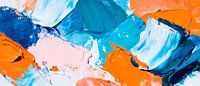 Heldere kleurspatten dansen harmonieus in een symfonie van blauwe, oranje en zachtroze nuances. Deze dynamische compositie brengt frisheid en energie in elke ruimte en is bijzonder geschikt voor de keuken. Het inspireert tot vrolijke gesprekken en culinaire creaties terwijl het een creatieve sfeer creëert.