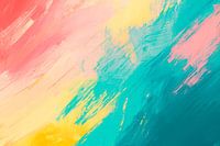 Zachte pastelkleuren dansen harmonieus over het doek en creëren een gevoel van lichtheid en vrolijkheid. De dynamische penseelstreken in harmonieus roze, geel en turquoise geven elke kamer energie. Dit kunstwerk is perfect voor de woonkamer, waar het een uitnodigende sfeer creëert en creativiteit stimuleert.