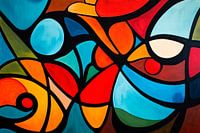 Dit kunstwerk danst in de kamer met levendige kleuren en dynamische vormen. De harmonieuze combinatie van blauw, rood en oranje springt in het oog en creëert een uitnodigende energie. Ideaal voor de woonkamer, het creëert een ontspannen sfeer die uitnodigt om te blijven hangen en je te verwonderen. Een echte blikvanger die gesprekken stimuleert!