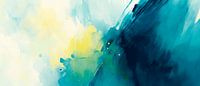 Zachte kleurtinten in koel blauw en levendig geel combineren harmonieus om een gevoel van rust en frisheid te creëren. De gebogen penseelstreken nodigen uit om te blijven hangen en creëren rustgevende accenten. Ideaal voor de woonkamer, waar ze gezelligheid en inspiratie verspreiden en tegelijkertijd een vredige sfeer bevorderen.