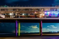 Avondopname met lange sluitertijd van de pier van Scheveningen. Door de lange opnametijd ontstaat er door het aanwezige licht een bijzondere sfeer.