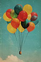 Laat je betoveren door de levendige kleuren en speelse energie van dit kunstwerk. Een tros kleurrijke ballonnen zweeft sierlijk door de lucht, alsof ze op het punt staan een magisch avontuur te beginnen. De zachte, dromerige achtergrond versterkt het gevoel van verwondering en neemt je mee naar een wereld waar alles mogelijk is. Dit kunstwerk is een vrolijke herinnering aan de schoonheid van eenvoudige momenten en de kracht van verbeelding.