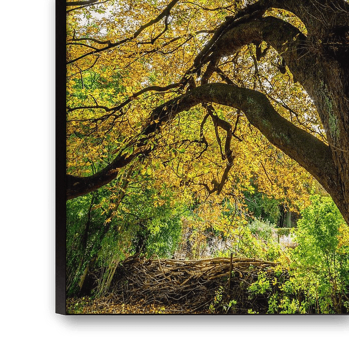 Een foto met een laagstaande zon achter de boom in het Staelduinse Bos. Hierdoor komen de kleuren van de bladeren goed tot hun recht. Het tegenlicht verzorgd daarbij een fijn contrast waardoor de kronkelende takken van de boom goed zichtbaar worden. Gemaakt door mij, Marco Schep