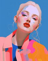 Kleurrijke blikvanger, modern portret. Met deze illustratie haal je echt iets bijzonders in huis. De kleuren knallen van je muur! Kies zelf het formaat en afdrukmateriaal.