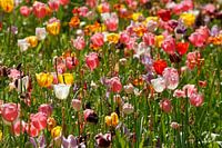 Kleurrijke bloeiende tulpen, (Tulipa), perk, Duitsland