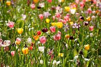 Kleurrijke bloeiende tulpen, (Tulipa), perk, Duitsland