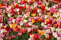Kleurrijke bloeiende tulpen (Tulipa), perk, Duitsland