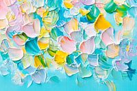 Koop dit abstracte kunstwerk Kleurrijke bloemblaadjes op blauw van Poster Art Shop als print op canvas, aluminium dibond, (ingelijste) fotoprint, behang en ArtFrame. Voor jou op maat geprint in Fine-Art kwaliteit.