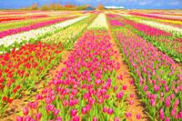 zicht op kleurrijke bloembollenvelden als digital art vanuit de Noord-Holland