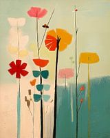 Kleurrijke bloemen "Flower power". Met dit werk haal je vrolijkheid in huis! Speels vormgegeven en gekleurde bloemen geven dit werk een echte zomerse sfeer!