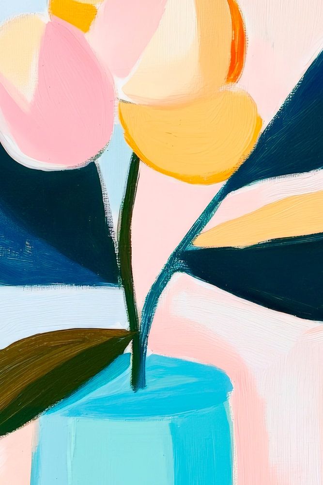 Levendige kleuren en gedurfd gevormde bloemen trekken de aandacht, terwijl het harmonieuze arrangement in een delicate bloempot frisheid en levendigheid uitstraalt. Deze vrolijke compositie brengt een vleugje natuur en vreugde in elke woonkamer, ideaal voor ontspannen momenten en sociale bijeenkomsten. Een echt hoogtepunt aan elke muur!