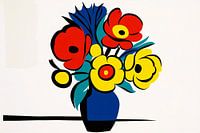 Deze opvallende bloemenillustratie in pop-art stijl is perfect om een levendige sfeer aan elke ruimte toe te voegen. De felle kleuren rood, geel, blauw en groen zijn omlijnd met gedurfde zwarte contouren, wat het geheel een speels en modern gevoel geeft. De bloemen zijn stijlvol en abstract weergegeven, waarbij de eenvoud van het ontwerp zorgt voor een krachtige uitstraling. Dit kunstwerk past goed in zowel woon- als werkruimtes en trekt meteen de aandacht. Of het nu in een woonkamer, eetkamer of kantoor hangt, het brengt kleur en energie in de ruimte. De ideale keuze voor wie houdt van een moderne, vrolijke uitstraling in huis.
