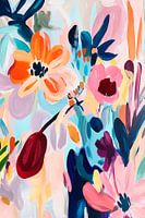 Levendige kleuren dansen op het doek en voegen een vrolijke energie toe aan elke kamer. De vloeiende penseelstreken en kleurrijke bloemenpatronen creëren een uitnodigende sfeer, ideaal voor een woonkamer of keuken. De vreugde van het leven komt hier tot uiting en maakt van elk bezoek een bloeiende ervaring!