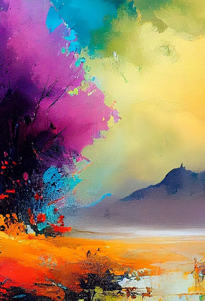 Een fris en kleurrijk ogend schilderij van prachtige bomen aan de waterkant.