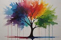 Ontdek de vibrante essentie van de natuur met dit prachtige kunstwerk. Een majestueuze boom staat centraal, zn takken uitgespreid in een kleurrijke viering van leven en groei. De wortels zijn stevig verankerd, symboliserend stabiliteit en kracht. Het palet varieert van diepe blauwtinten tot vurig rood en zonnig geel, waardoor de kijker een spectrum van emoties ervaart. Elke penseelstreek voegt dynamiek en beweging toe, terwijl kleurrijke druppels als regen van het canvas lijken te vallen, wat een extra dimensie van creativiteit en diepte toevoegt. Dit kunstwerk is niet alleen een visueel feest maar spreekt ook tot de ziel, en nodigt uit tot reflectie over de natuurlijke schoonheid die ons omringt.