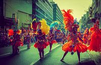 Kleurrijke carnavalsoptocht op straat, kunstillustratie