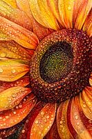 Voeg een explosie van kleur en detail toe aan je interieur met dit verbluffende ontwerp. De prachtige close-up van een zonnebloem is tot in de kleinste details vastgelegd, compleet met glinsterende waterdruppels die het geheel een frisse, natuurlijke uitstraling geven. De warme kleuren – van diep oranje tot helder geel – brengen direct warmte en levendigheid in elke ruimte. Dit kunstwerk is perfect om de schoonheid van de natuur binnen te halen en je interieur te laten stralen. Of het nu in de woonkamer, eetkamer of een andere ruimte wordt geplaatst, het is een echte blikvanger die een glimlach op je gezicht tovert.