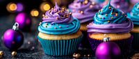 Delicate, glinsterende cupcakes in verleidelijk blauw en paars stralen een feestelijke sfeer uit. De glinsterende parels en liefdevol ontworpen toppings nodigen uit om te snoepen en geven elke kamer een zoete touch. Ideaal voor in de keuken of woonkamer, deze lekkernijen brengen vreugde en een dosis creativiteit in het dagelijks leven.