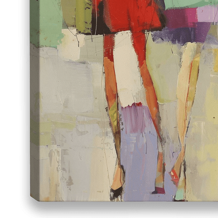 Kleurrijke dames. Dit zouden zomaar vriendinnen kunnen zijn op weg naar een feestje. Kleurrijk, modern en abstract. Een echte blikvanger!