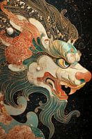Deze schitterende draakkop is een explosie van kleur en detail. Met rijke tinten rood, turquoise en goud straalt het werk kracht en energie uit. De bloemen en parels die subtiel in het ontwerp zijn verwerkt, geven een extra dimensie van luxe en verfijning. De draak staat in veel culturen symbool voor wijsheid, bescherming en geluk, wat dit kunstwerk niet alleen visueel aantrekkelijk maakt, maar ook een betekenisvolle toevoeging aan je interieur. Perfect voor wie op zoek is naar een opvallend en artistiek stuk dat meteen de sfeer in een ruimte bepaalt. De combinatie van krachtige lijnen en sierlijke patronen maakt dat het werk zowel in moderne als klassieke interieurs goed tot zijn recht komt. Creëer een ruimte die inspireert en verrast met dit betoverende kunstwerk van een draakkop vol symboliek en artistieke schoonheid.