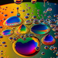 De serie Kleurrijke druppels en spetters is een serie van 7 vierkante moderne werken met vrolijk gekleurde spetters en druppels op een spiegelend vlak. De afbeeldingen zijn digitaal samengesteld met een zogenaamd "text to image" programma waarbij de ingegeven tekst een afbeelding genereert. De mate van nauwkeurigheid waarmee de tekst wordt ingevoerd met steekwoorden en omschreven aanpassingen bepalen de uitkomst van het werk. De werken worden omschreven als digitale moderne kunst.