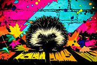 Een speelse en unieke illustratie die een schattige egel laat zien te midden van een levendige, kleurrijke achtergrond. De combinatie van felle kleuren en graffiti-achtige accenten maakt dit ontwerp perfect voor liefhebbers van moderne en opvallende kunst. Het vrolijke en dynamische karakter van dit kunstwerk zal elke ruimte opfleuren, of het nu een woonkamer, eetkamer of kantoor is. Dit stuk trekt direct de aandacht en brengt een glimlach op je gezicht. Ideaal voor diegenen die houden van dierenkunst met een creatieve twist.