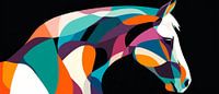 Een levendig spel van kleuren en vormen vangt de elegantie van een paard op een abstracte manier. De harmonieuze compositie van felle, heldere kleuren tegen het diepe zwart trekt onmiddellijk de aandacht en voegt een dynamische toets toe aan elke kamer. Ideaal voor de woonkamer, waar het conversatie en levendige energie brengt.