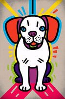 Dit levendige en speelse ontwerp toont een hond in een kleurrijke, moderne stijl. De felle kleuren en de opvallende lijnen maken dit kunstwerk tot een echte blikvanger in elk interieur. Het design is geïnspireerd op de Pop Art-stijl, waardoor het werk zowel vrolijk als eigentijds overkomt. Dit kunstwerk is perfect voor mensen die hun huis willen verlevendigen met een stukje kunst dat een glimlach op het gezicht tovert. Plaats het in je woonkamer of kantoor om de ruimte op te fleuren en een positieve sfeer te creëren. Een uniek kunstwerk voor iedere hondenliefhebber en kunstenthousiasteling.