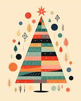 Kleurrijke en vrolijke kerstboom, illustratie. Kies zelf het formaat en het materiaal waarop je dit werk wilt laten afdrukken en maak het helemaal passend voor jouw interieur.