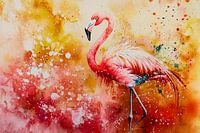 Een prachtige aquarelillustratie van een elegante flamingo, weergegeven in levendige kleuren die warmte en energie uitstralen. Deze unieke creatie combineert gedurfde penseelstreken met zachte, vloeiende overgangen van rood, geel en roze, wat een dynamisch en artistiek meesterwerk oplevert. Het is perfect geschikt om elke ruimte, van slaapkamers tot eetkamers, op te fleuren en een vleugje natuurlijke schoonheid toe te voegen. De kleurrijke spatten en organische texturen geven een speelse en eigentijdse uitstraling, waardoor dit werk een blikvanger is in elk interieur.