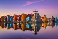 Kleurrijke gebouwen langs het water in Reitdiephaven, Groningen, Nederland
