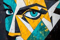 In levendige kleuren en geometrische vormen vangt het kunstwerk de blik met intens stralende ogen. De felle contrasten tussen geel en turquoise geven de compositie een dynamische uitstraling. Ideaal voor in de woonkamer of op kantoor, waar het gesprekken stimuleert en creativiteit losmaakt.