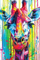 Deze unieke en kleurrijke giraffe is een ware eyecatcher voor elk interieur. Het schilderij, uitgevoerd in een abstract expressionistische stijl, barst van de levendige kleuren zoals geel, blauw, rood, groen en roze. De giraffe is afgebeeld met een speelse mengeling van verfspetters, wat het geheel een dynamisch en energiek karakter geeft. Dit kunstwerk is perfect voor liefhebbers van moderne en eclectische kunst. Hang het in je eetkamer of slaapkamer om een vrolijke en artistieke sfeer te creëren. Laat je inspireren door de creatieve uitdrukking van dit ontwerp en voeg een vleugje kleur en originaliteit toe aan je woonruimte.