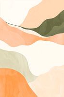 Zachte, gebogen lijnen dansen in harmonieuze kleuren die doen denken aan glooiende heuvels en uitgestrekte landschappen. Delicate perzik- en olijftinten vermengen zich met lichte crèmekleuren, terwijl de organische vormen een rustgevende, bijna meditatieve sfeer creëren. Hier is ruimte voor dromen en gedachten, een visueel samenspel van natuurlijkheid en creativiteit.