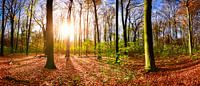 Zonsopgang in een herfstig bos. De foto werd genomen in het Gremberger Wäldchen (een klein bos in Keulen) op een zonnige herfstdag