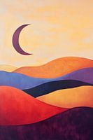 Een dromerig landschap ontvouwt zich in zachte, harmonieuze kleurtonen, waarin glooiende heuvels rusten onder een delicate zee van maanstralen. De kleuren spelen met elkaar en nodigen je uit om te ontspannen. Dit kunstwerk is ideaal voor de slaapkamer en brengt een rustgevende sfeer die de nacht omarmt en aanzet tot zoete dromen.
