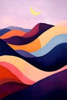 Zachte golven van levendige kleuren dansen harmonieus over het doek, terwijl een delicate maan glinstert in de lucht. Deze dynamische compositie roept tegelijkertijd een gevoel van rust en levendigheid op. Perfect voor een woonkamer om een gesprek te inspireren of een ontspannen sfeer te creëren terwijl je tot rust komt.