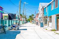 Caye Caulker is een klein Carbisch eiland aan de kust van Belize. De bewoners op dit eiland hebben geen haast. Hun moto is "Go Slow". Het tropische eiland is omringd met prachtige zee en koraalrif. Op deze foto zie je de hoofdstraat in het kleurrijke stadje.